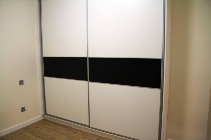 Armario con perfileria minimalista plata y combinación de blanco y negro