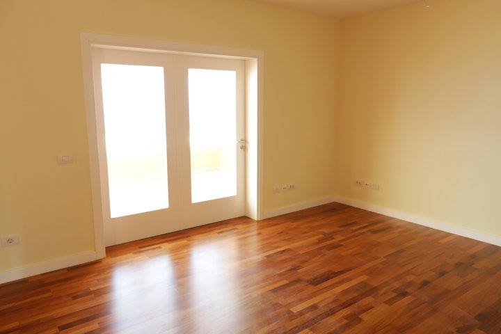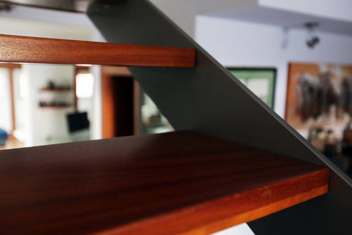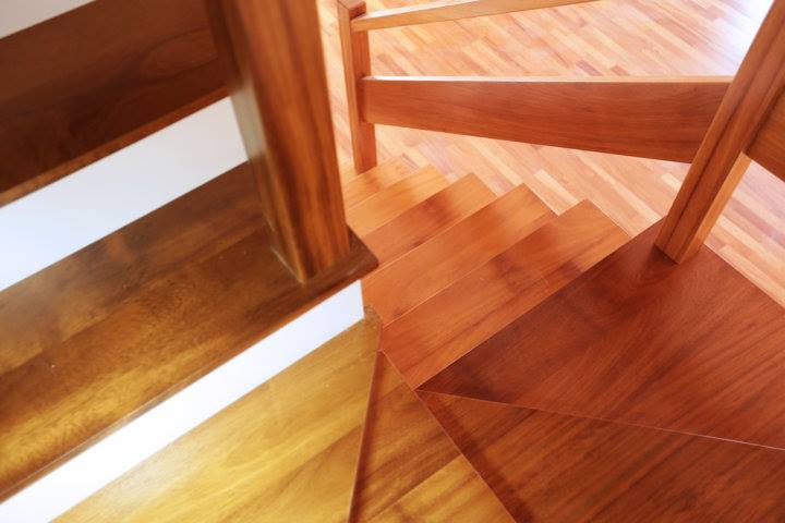 Escalera revestida de madera lacada con barandilla en misma madera y color